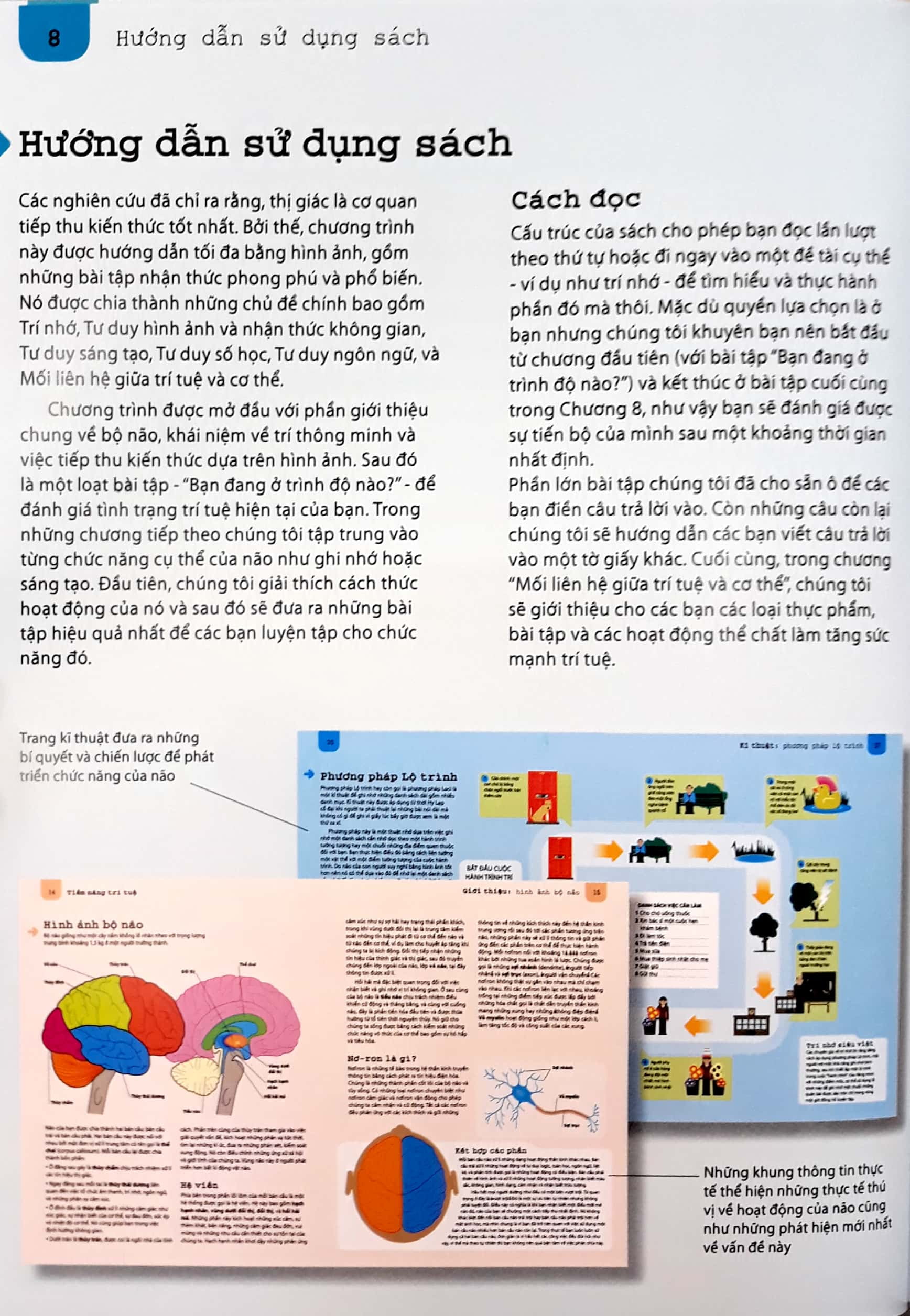 – Nâng cao các kỹ năng giải quyết vấn đề.Trong cuốn sách mang tính đột phá này, bạn sẽ được tìm hiểu về bộ não của mình cùng với cấu trúc va khả năng đáng ngạc nhiên của nó. Bạn sẽ khám phá về trí nhớ của mình và bộ nhớ khổng lồ của nó cũng như khả năng sáng tao, thiên hướng bẩm sinh với hình ảnh và con số của mình. Cuốn sách sẽ cung cấp cho bạn những phương pháp “hình ảnh” d8e63 phát triển tư duy ngôn ngữ và khả năng ngôn từ của bạn. Trong này còn có một chương nói về tầm quan trọng của mối liên hệ giữa trí não và cơ thể, ở đó bạn sẽ hiểu được câu châm ngôn của người xưa đúng đắn thế nào:”Cơ thể khoẻ mạnh thì trí tuệ mạnh khoẻ, trí tuệ mạnh khoẻ thì cơ thể khoẻ mạnh”. Thông qua việc thực hiện những bài tập trong “Tối Ưu Hoá Trí Thông Minh”, bạn sẽ cải thiện khả năng chú ý và sự tập trung, trí nhớ, cách học tập và khả năng sáng tạo. Những khả năng này sẽ tăng cường đáng kể sự tự tin và lạc quan trong cuộc sống của bạn.Dành thời gian cho chương trình Tối Ưu Hoá Trí Thông Minh chính là đầu tư vào tài sản tri thức cảu bạn và đó chính là tài sản có giá trị nhất trên thế giới này.TONY BUZAN (Người phát minh ra sơ đồ tư duy)